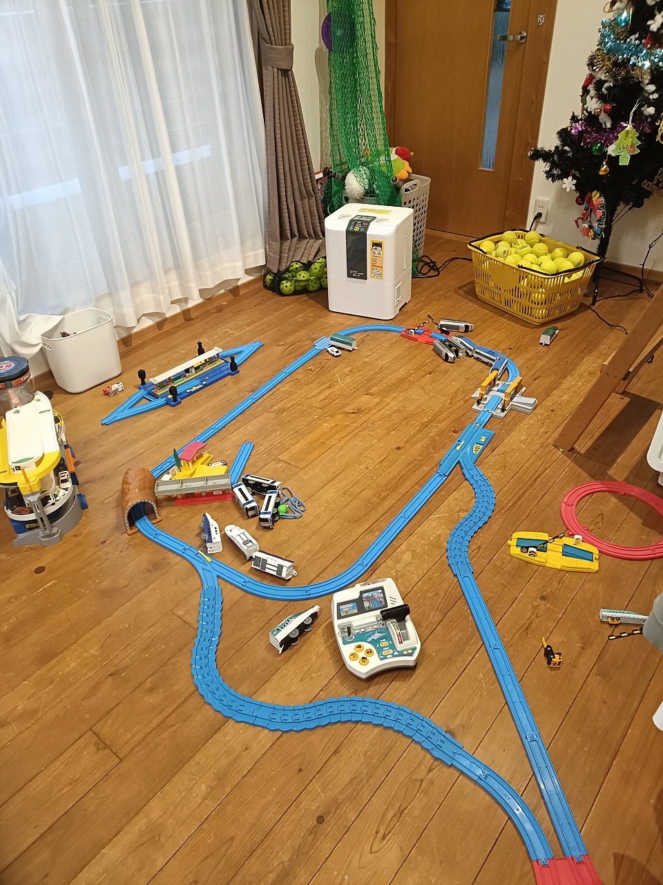 まずは、出しっぱなしのプラレールをお片付けしてもらいました。おもちゃを出した張本人が担当します。
