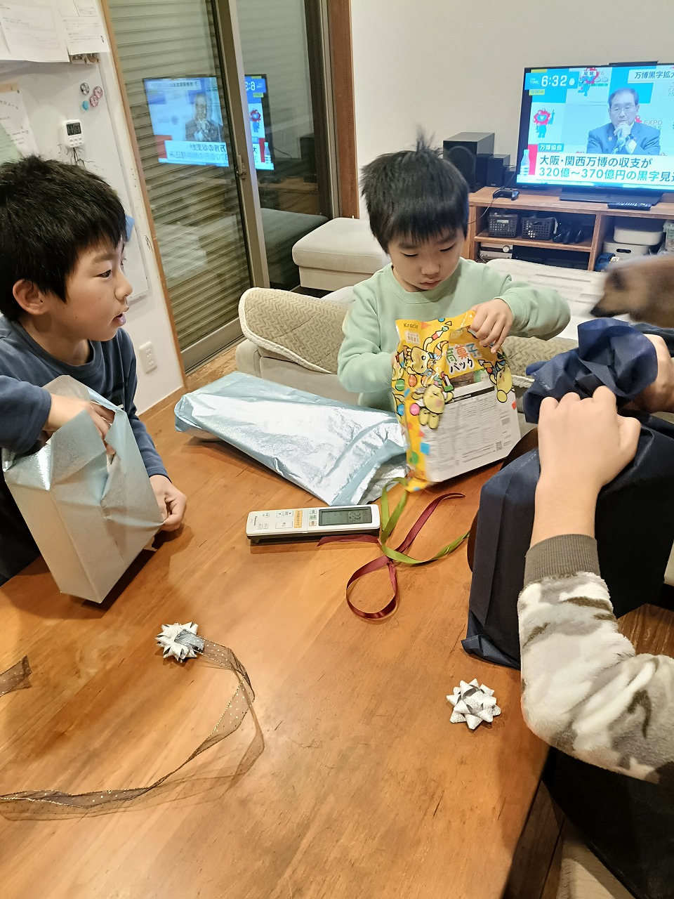 朝からご飯も食べずに、プレゼントの開封作業です。
