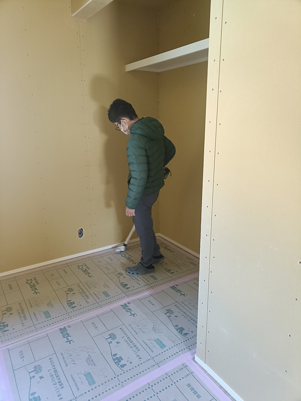 大工さんの通称ムラマッチョさんは、たぶん几帳面できれい好き。もちろん埃や木くずはありますが、現場はとってもきれいな状態。もう使わない材料は運び出しながら、掃除を行いました。荷物自体もそこまで多くなく、みんなのお手伝いもあって、1時間程度でキレイになりました!
