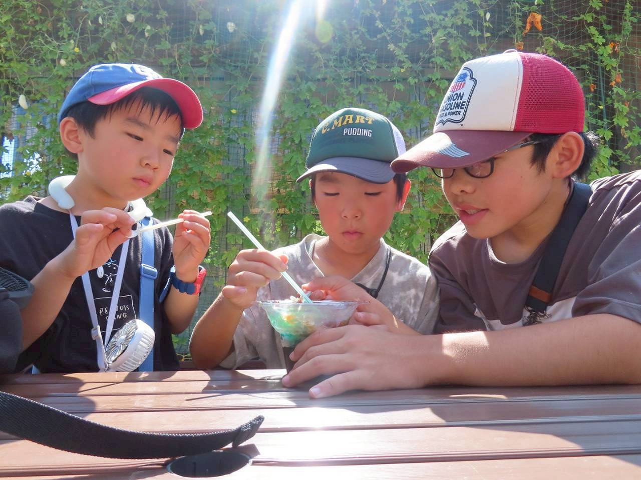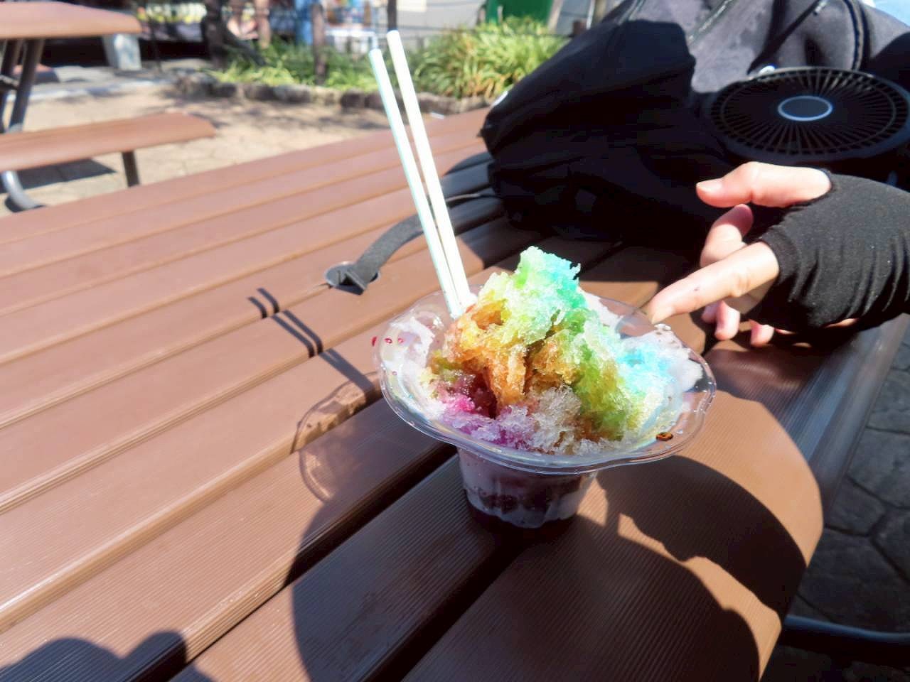 暑いのもあって、三男のご機嫌が悪くなってきたのでレインボーかき氷を食べてクールダウン。