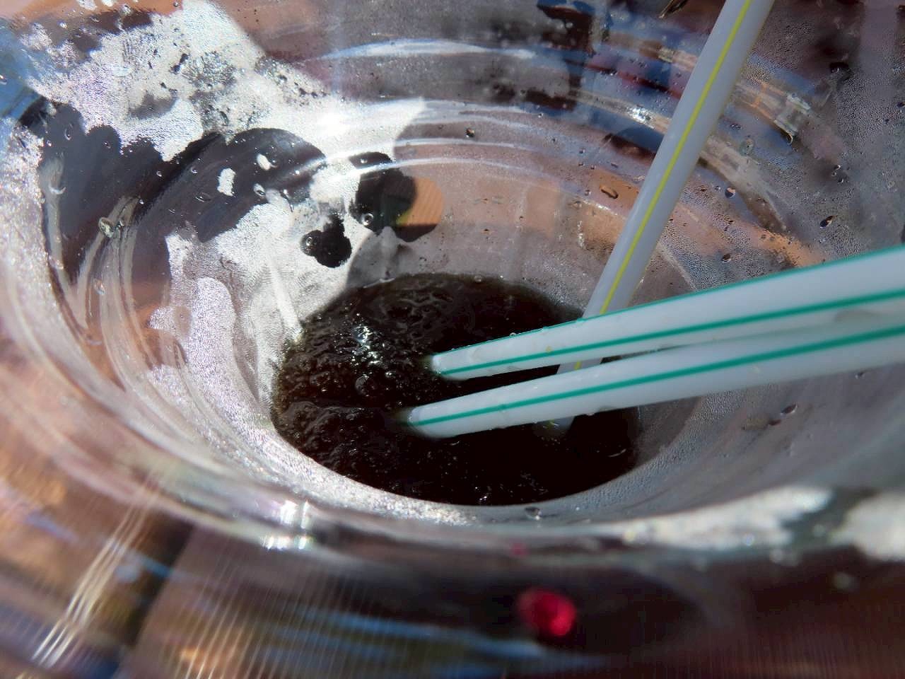 自由にシロップをかけていいタイプ。見本はキレイなレインボーなのに…我が子たちがすると、何かちょっとどどめ色。