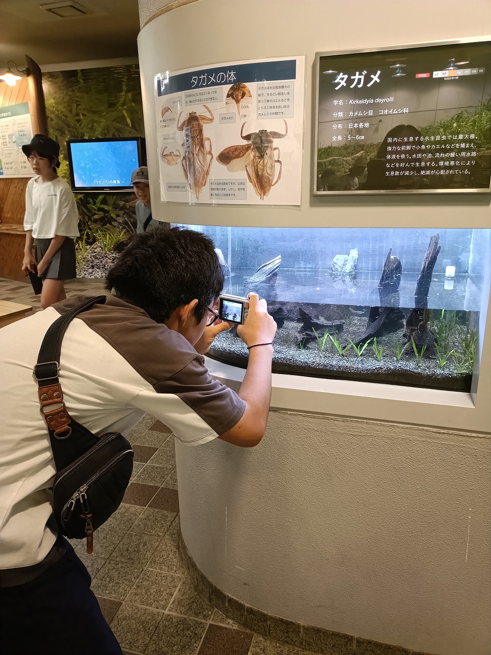 長男は、タガメの水槽にいたプラナリアを見付けて大興奮!!彼が手に入れたかった生き物。巷では、なかなか見つける事が出来ず、諦めたプラナリア。必死で写真を撮ります。
