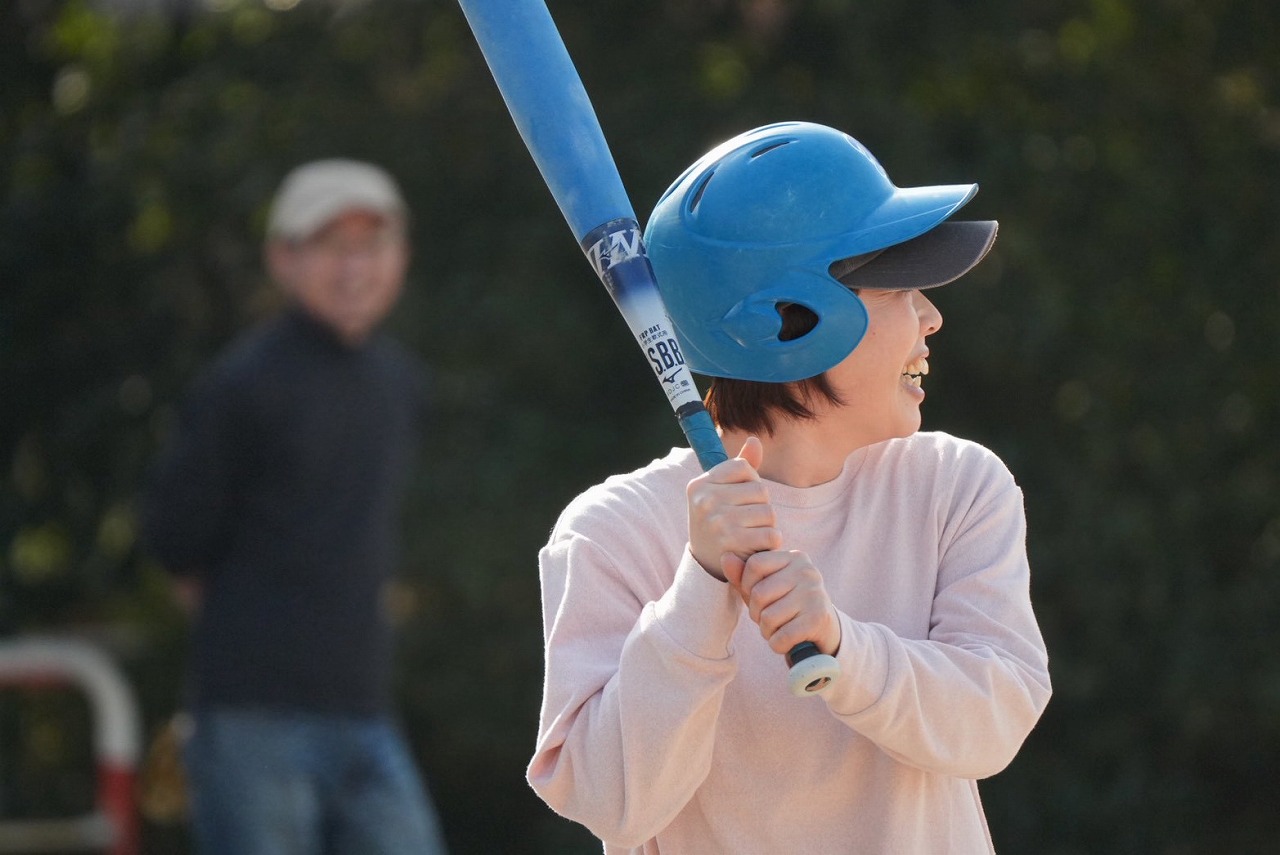 試合もしっかりピッチャーに投げられて、一回でいいから打ってみたいとバットをふるも見事に空振りです。