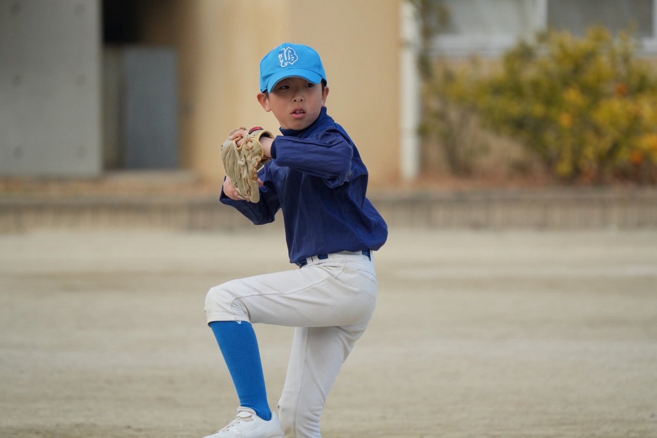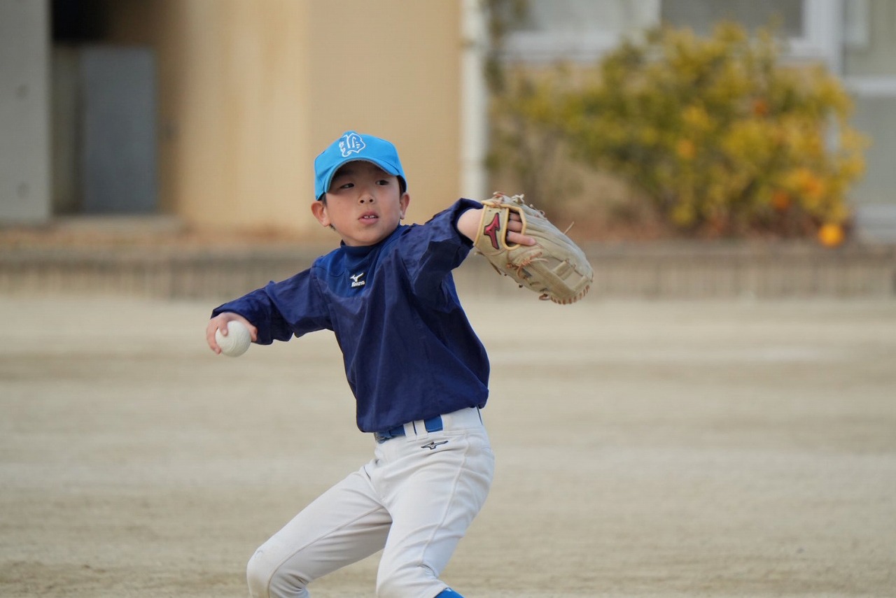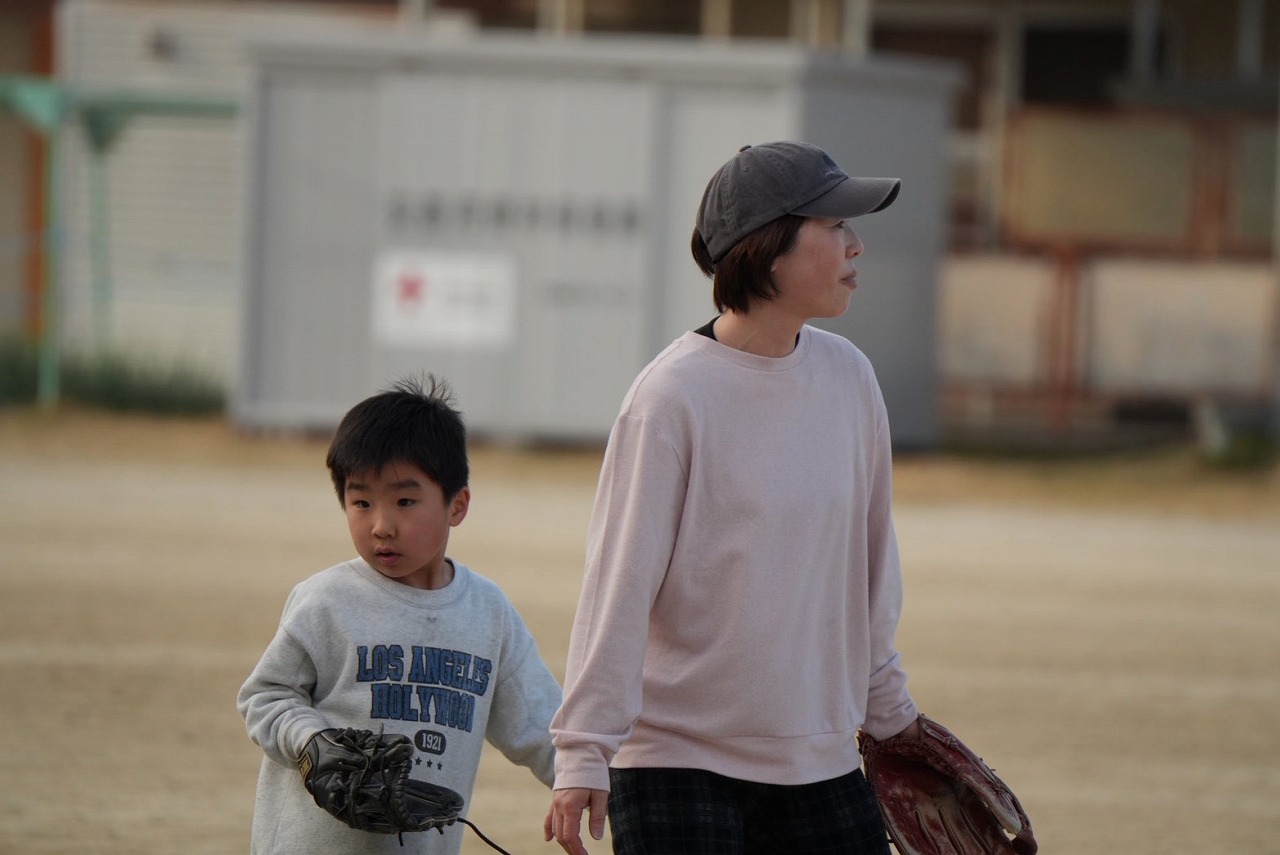 寒空のもと、少年野球おなじみの親子対決!!