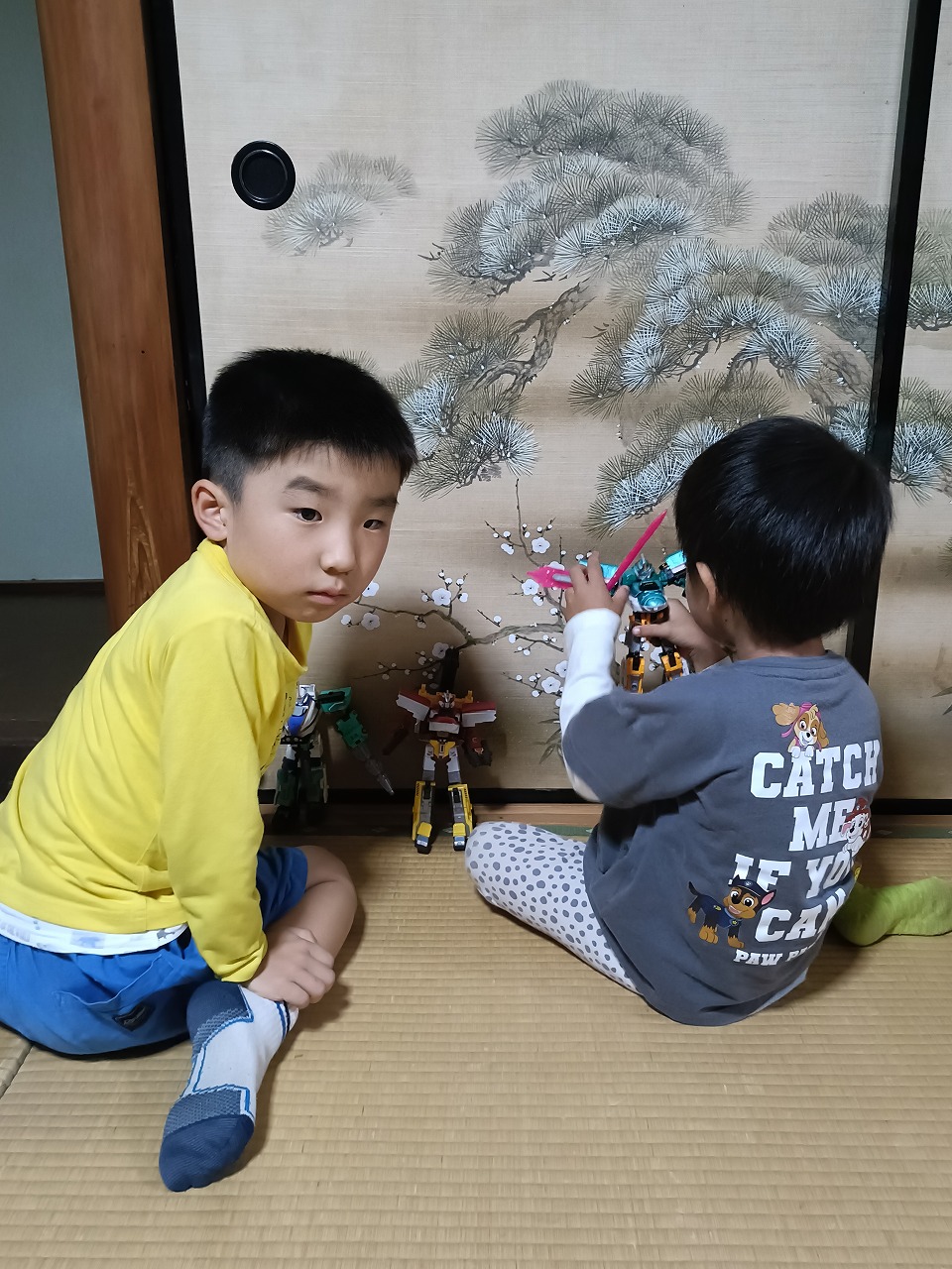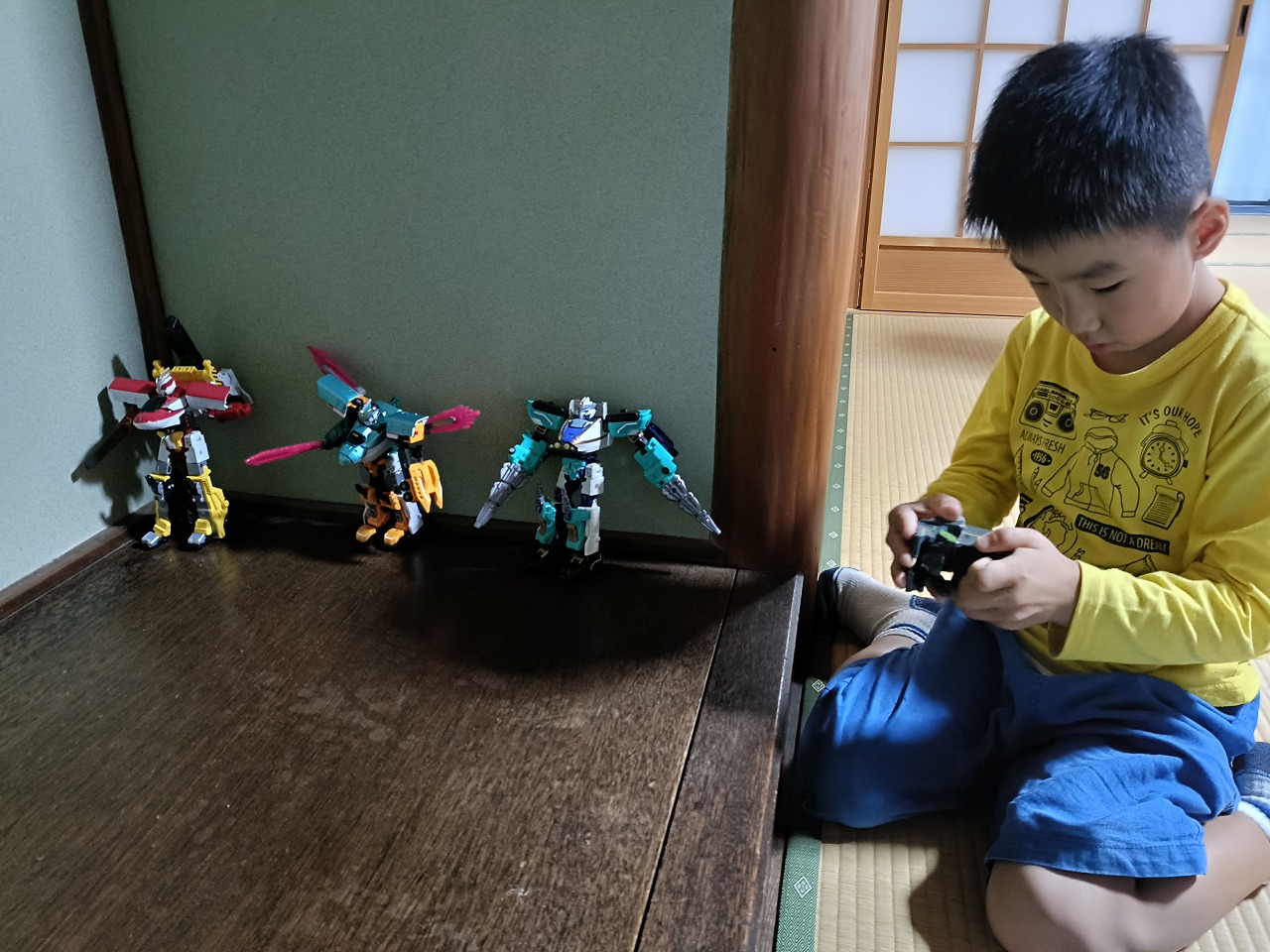 実家に着いたら、いとこたちと楽しく遊ぶ三男坊。シンカリオンを見せられて、目の色が変わります。兄ちゃんたちにつられて普段はゲームばっかりですが、珍しくブロックなんかも引っ張り出して、おチビ達で楽しく遊んでいました。彼は法事よりそっちがメインで帰ってきてたので、ばあちゃん家で遊ぶ!!のが大事なのです。