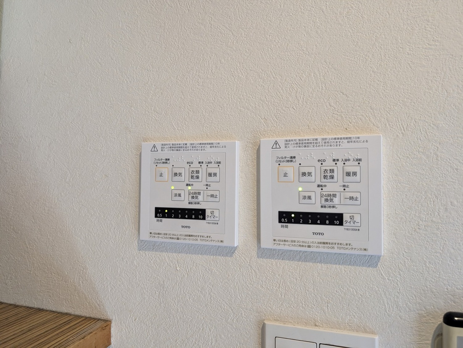 完成写真室内部分では、風呂場と脱衣室の換気感想暖房機を交換しました。