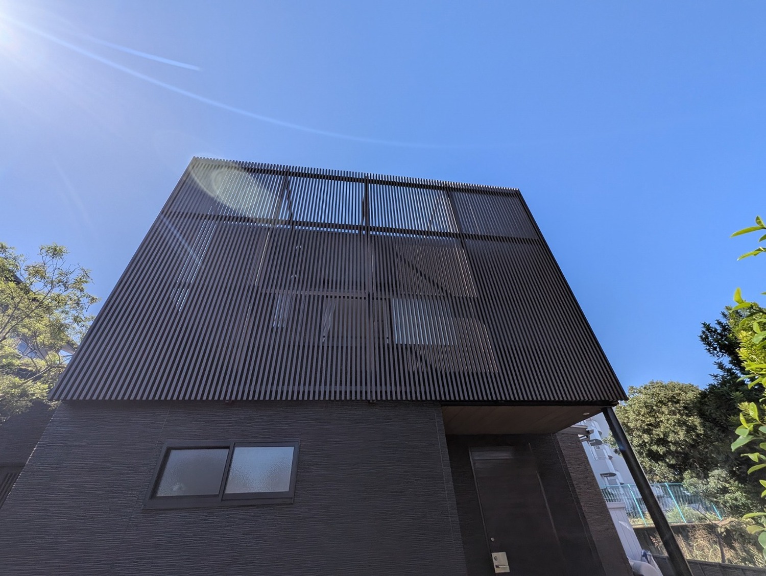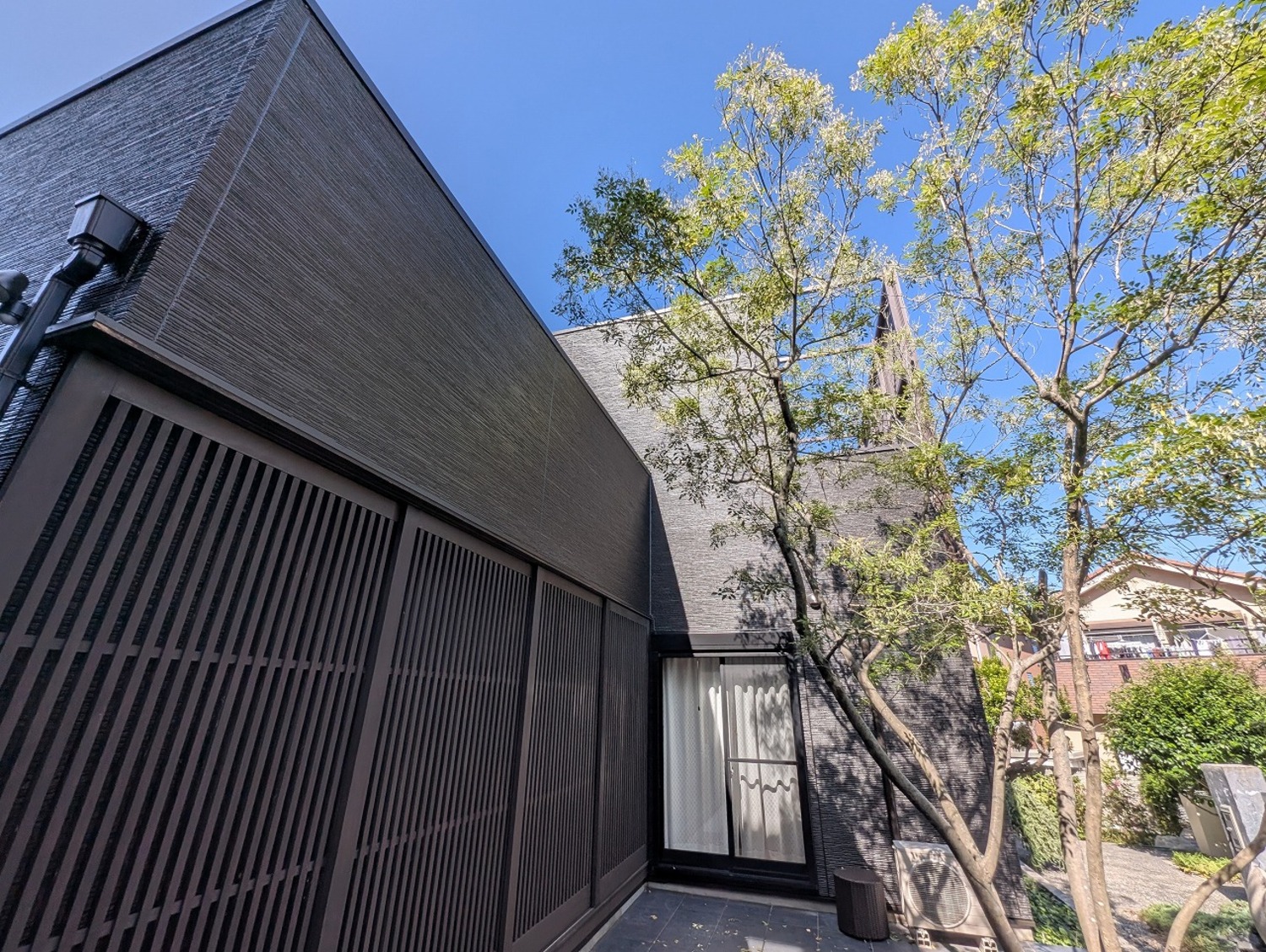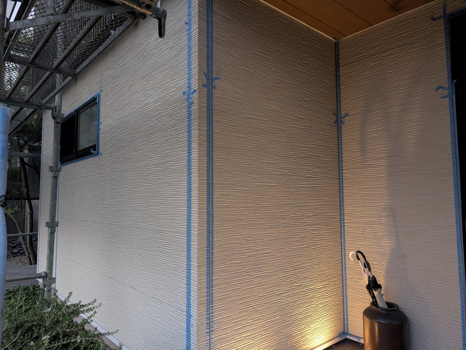 完成写真お部屋の格子の色に合わせて、外壁の色を決めました。今回は、外壁を塗り分けることはせずに、一色で仕上げます。