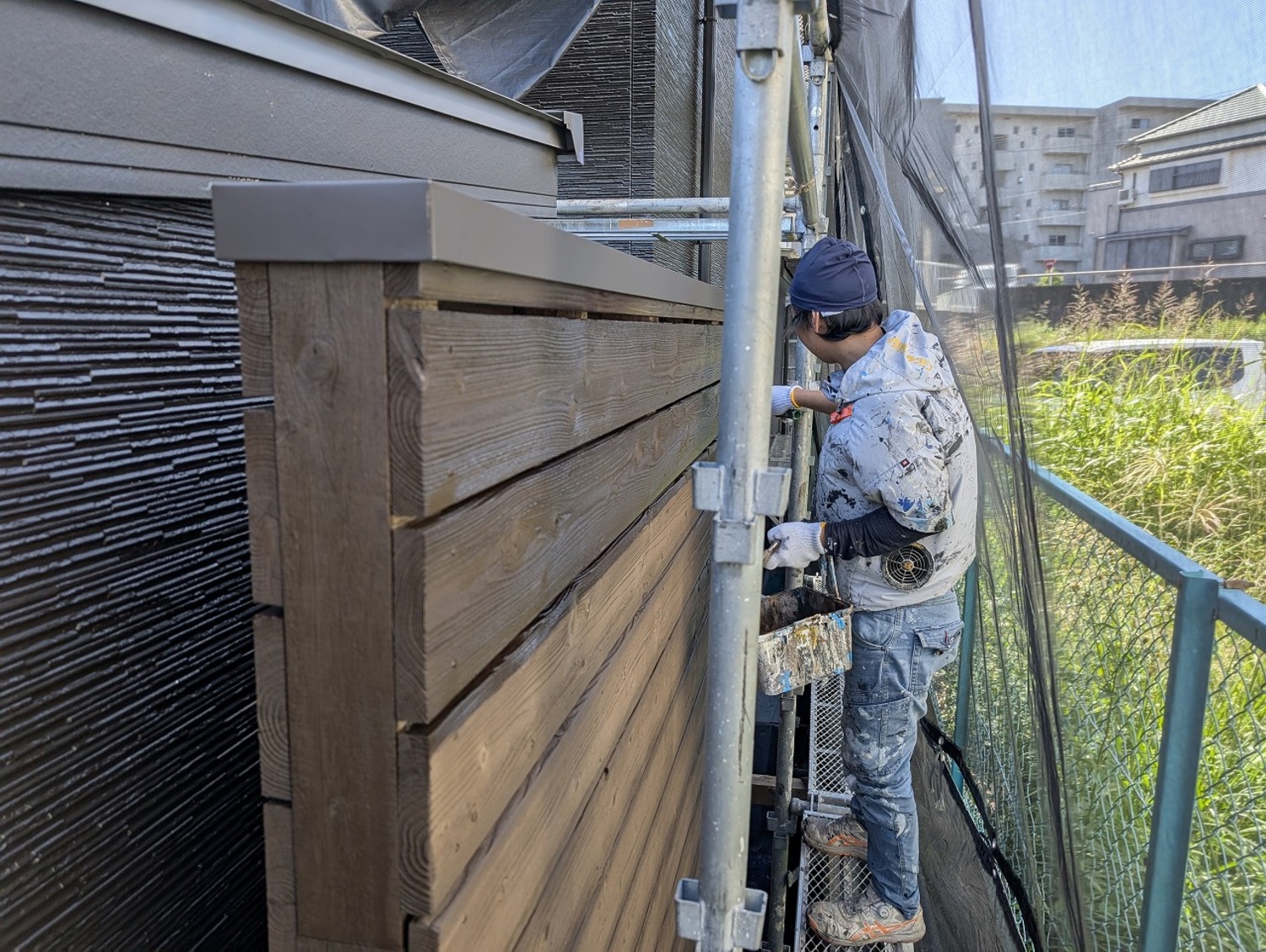 塗料の密着性を高める為に、まずは下塗りを行います。