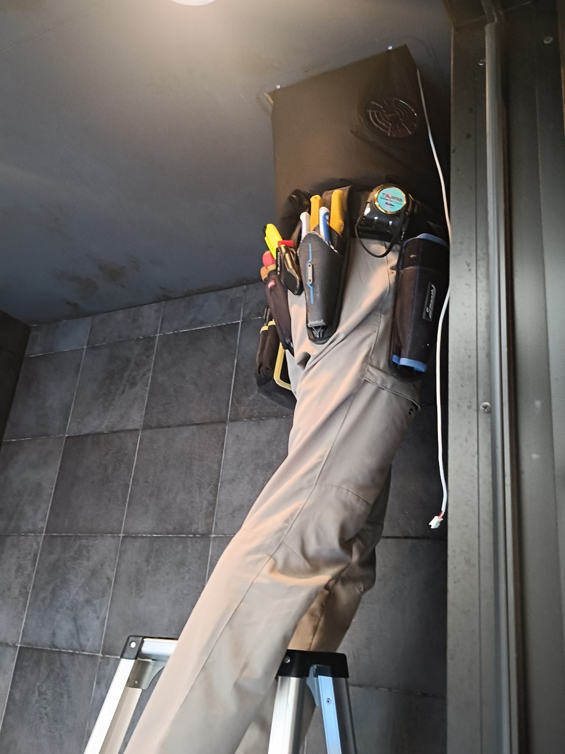 元々、乾燥機が二か所ついていましたが、排気口が一か所しかないことが判明!電気屋さんが、天井裏から新しい排気口を作ってくれました。
