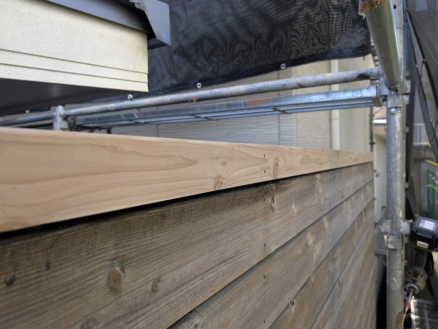 中庭にある木塀の笠木部分は腐っていたので付替えることにしました。