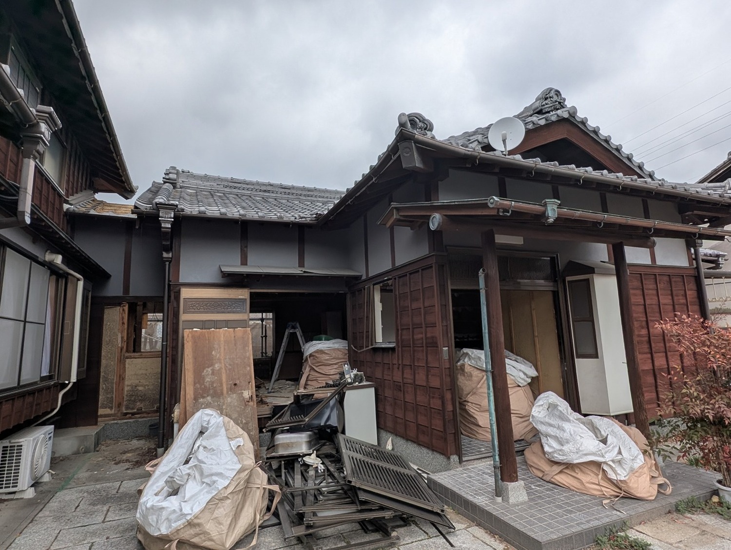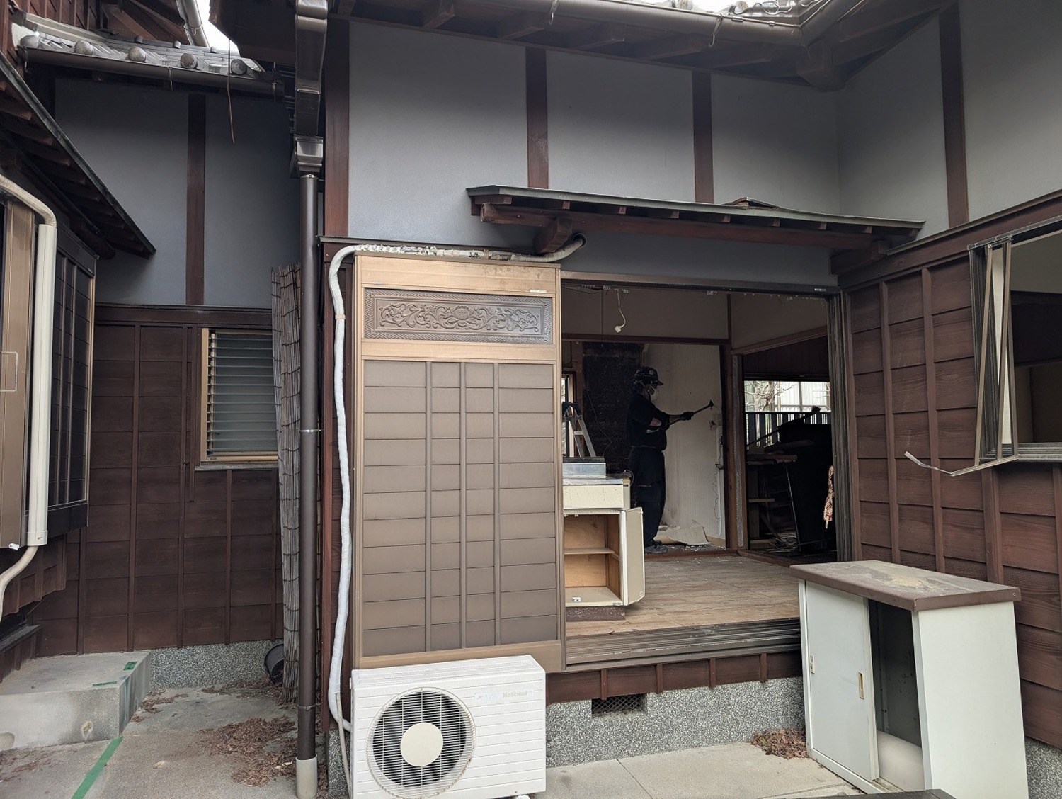 母屋と離れがつながっている状態なので、まずは手作業での解体でつながっている部分を切り離します。