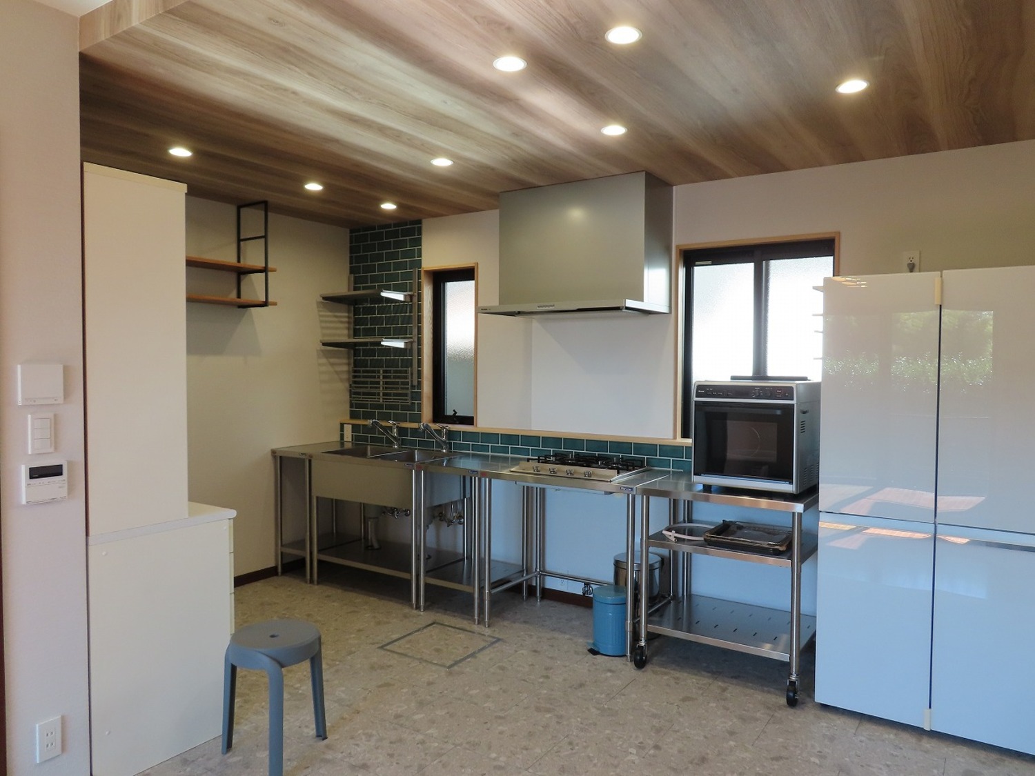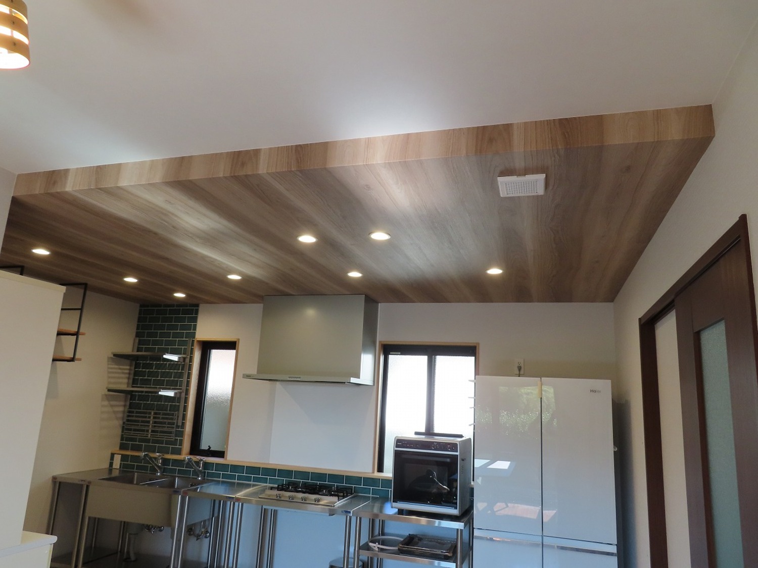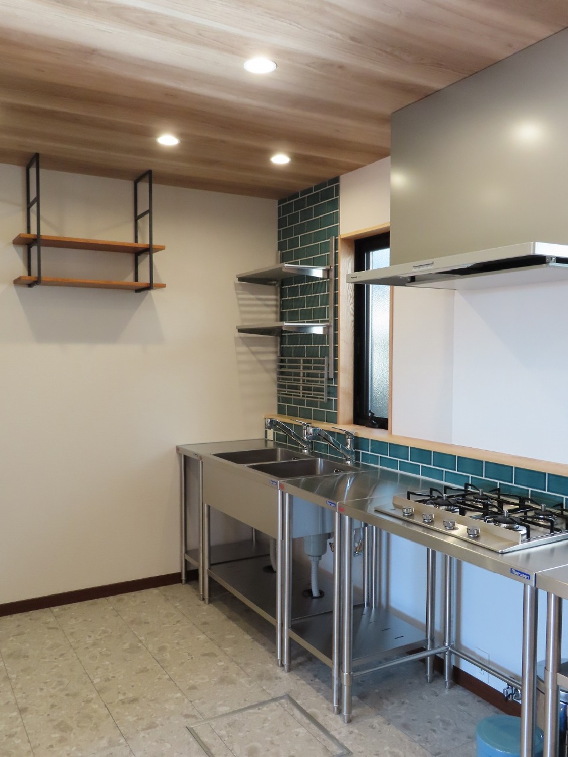 LDKリフォーム 業務用キッチン使用 タイル貼りでかわいらしく 知多市