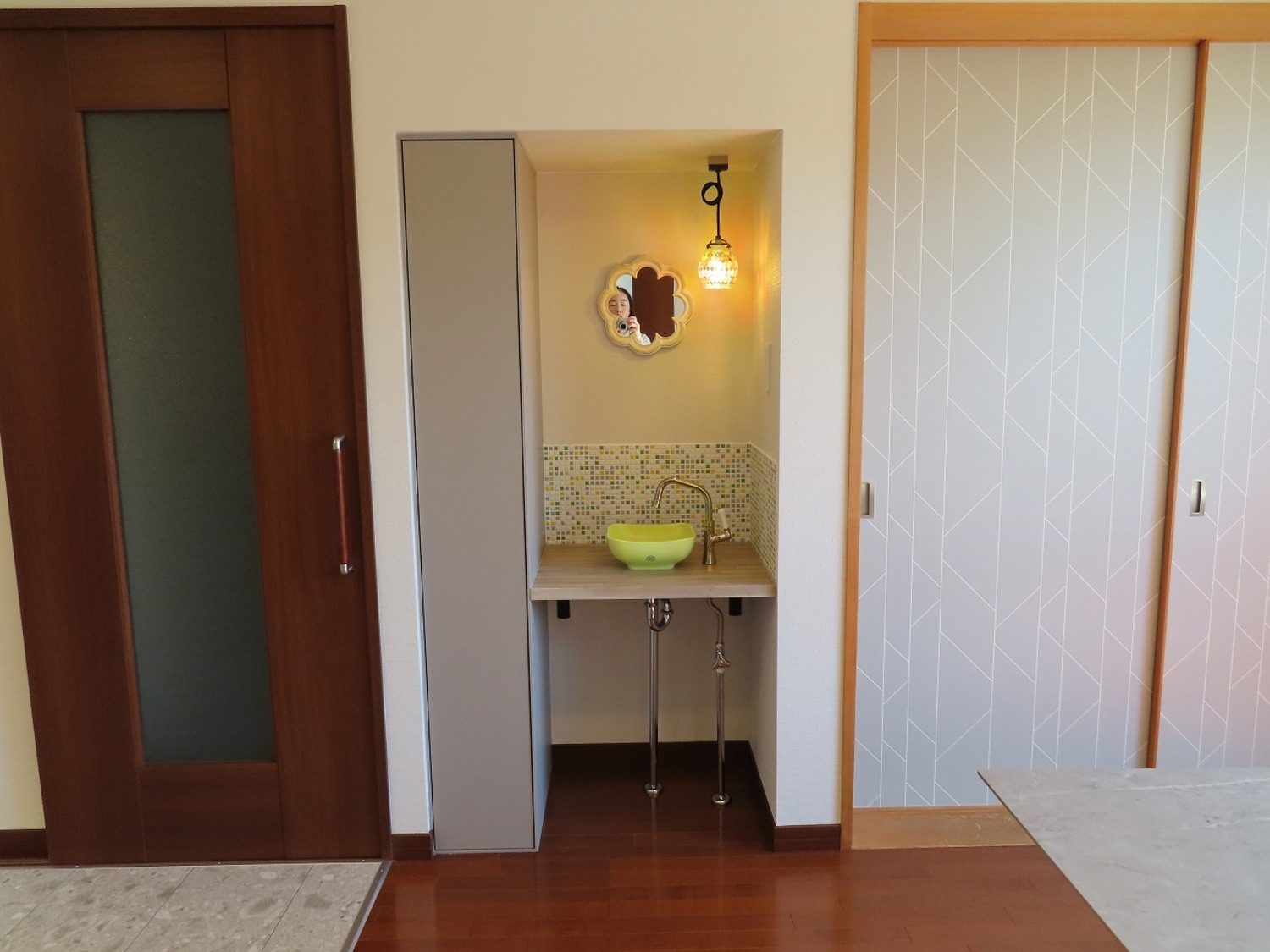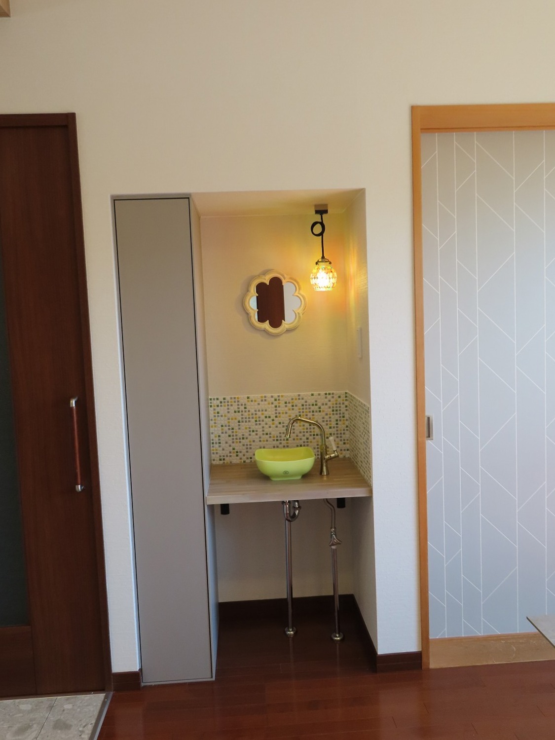LDKを本格お料理ができるキッチンにリフォーム 手洗いとタイル貼りでかわいらしく完成しました!