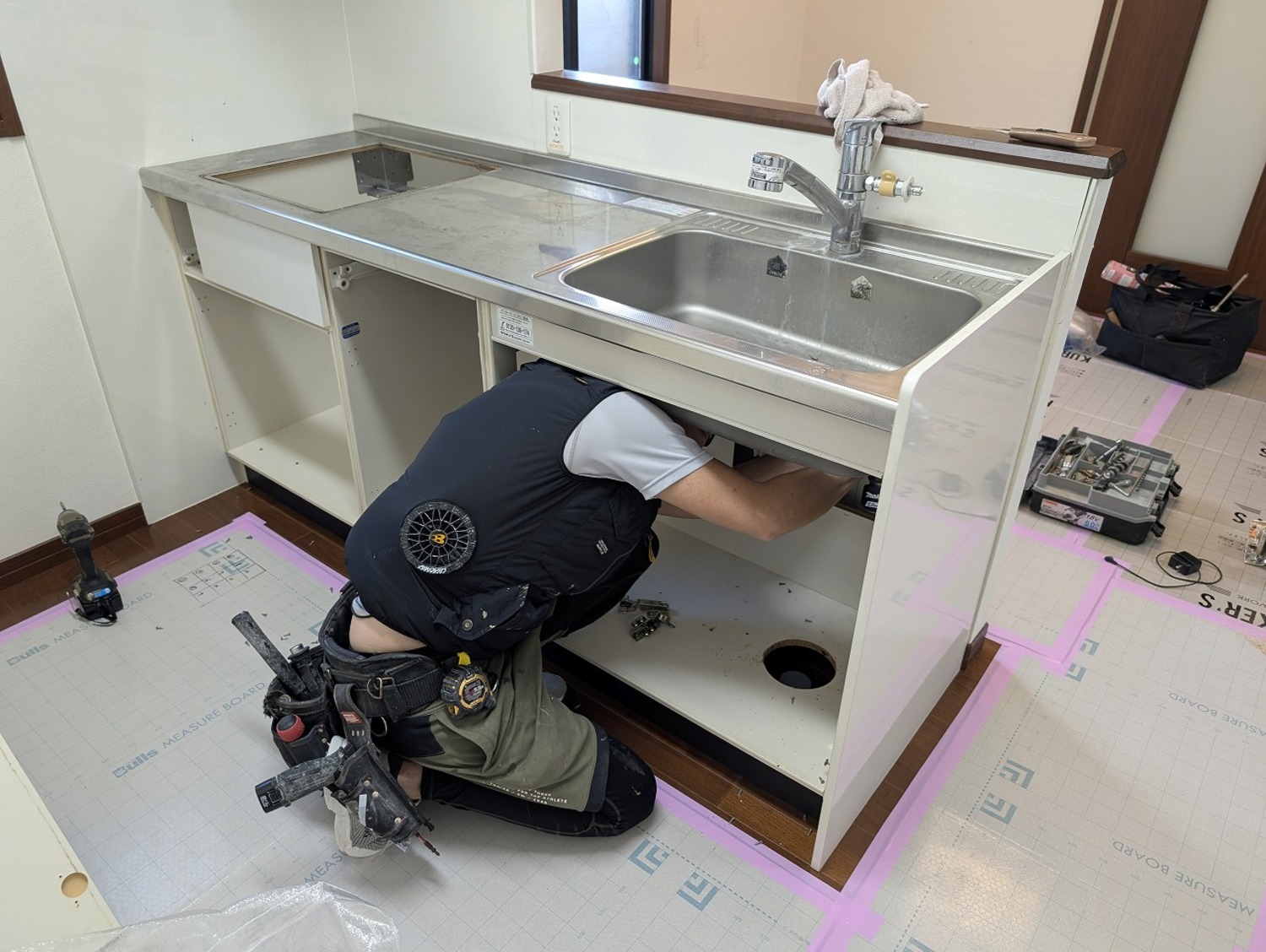 今あるキッチンは撤去するので、まずは水道屋さんが止水をしにきてくれました。