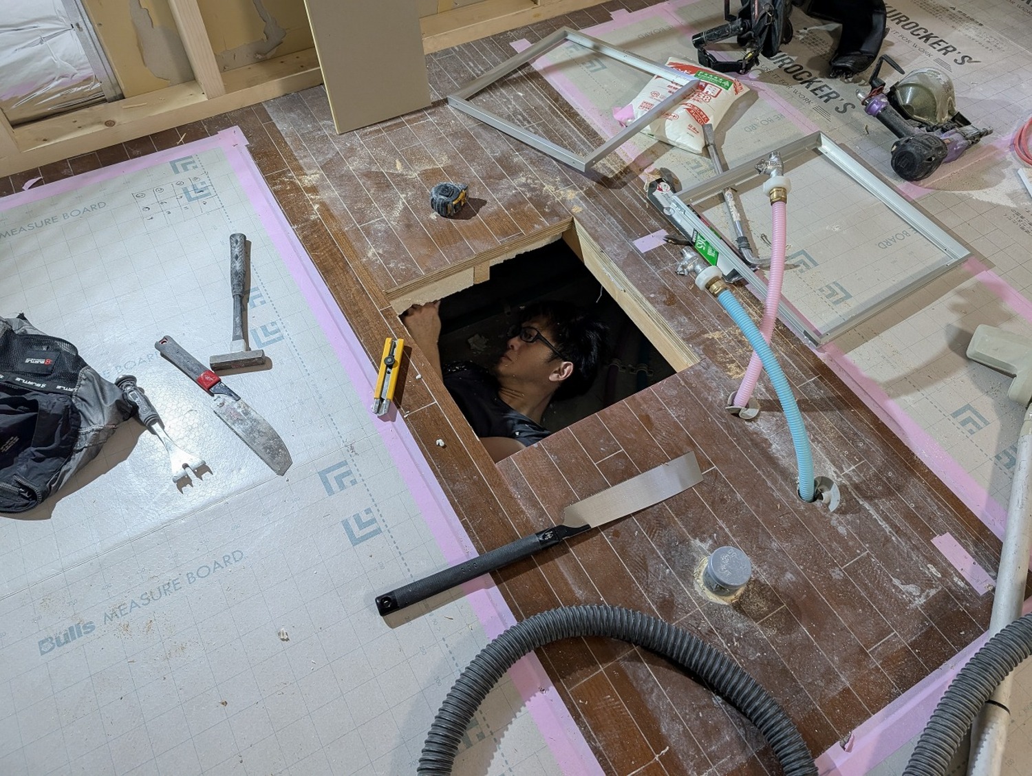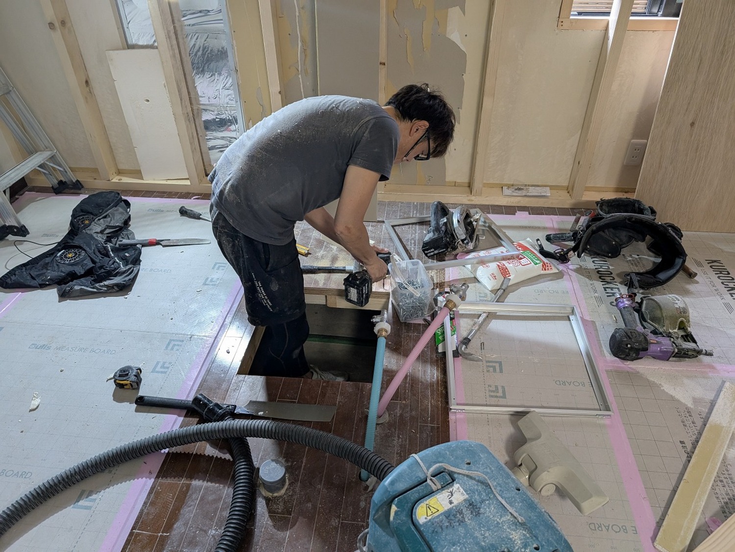 床下点検口が和室にしかなかったので、キッチン部分に新しく作りました。