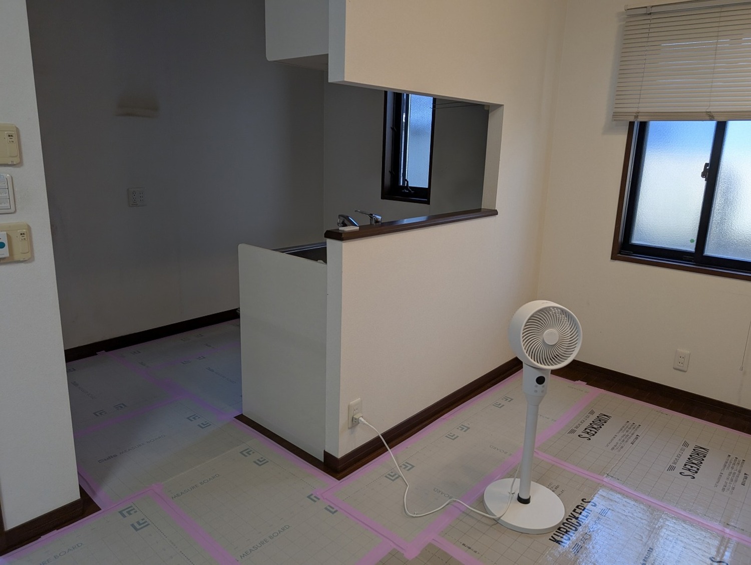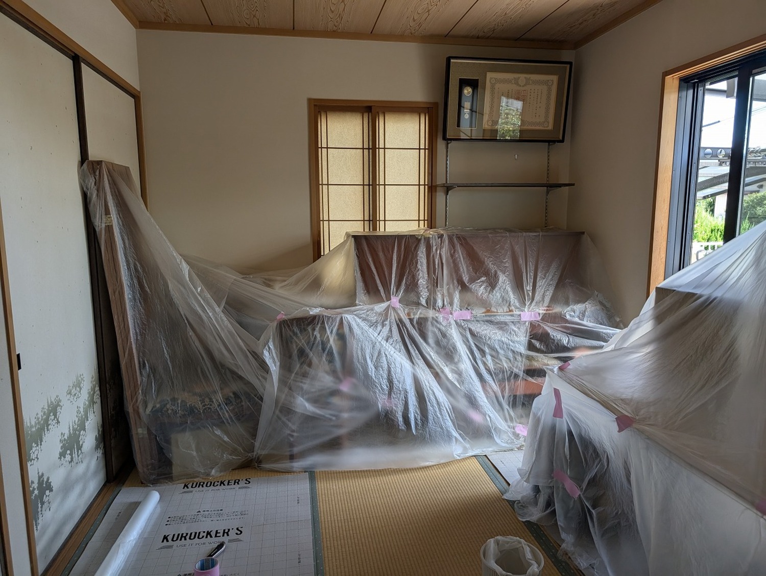 お隣の和室に、荷物を移動していただき埃が被らないように養生しました。
