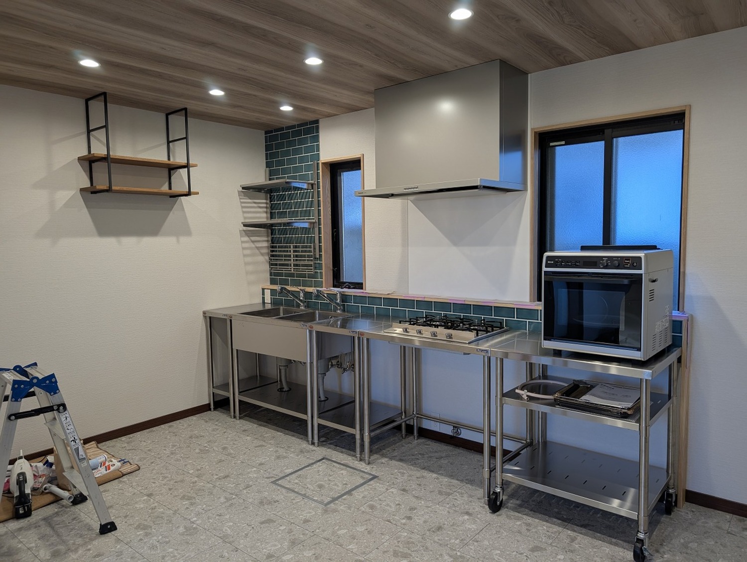 完成写真業務用キッチンを使うことでコストを抑えると同時に、保健所からの二層シンクなどの条件をクリアしていきます。