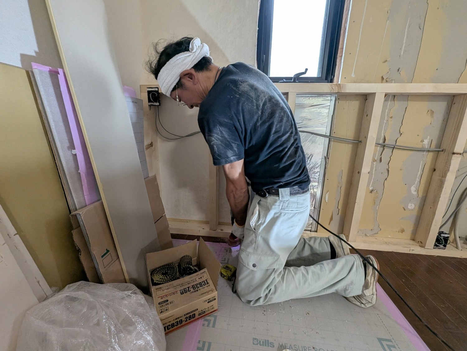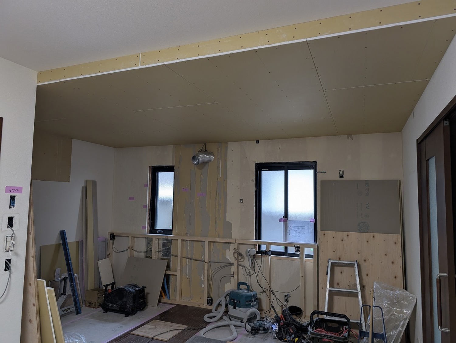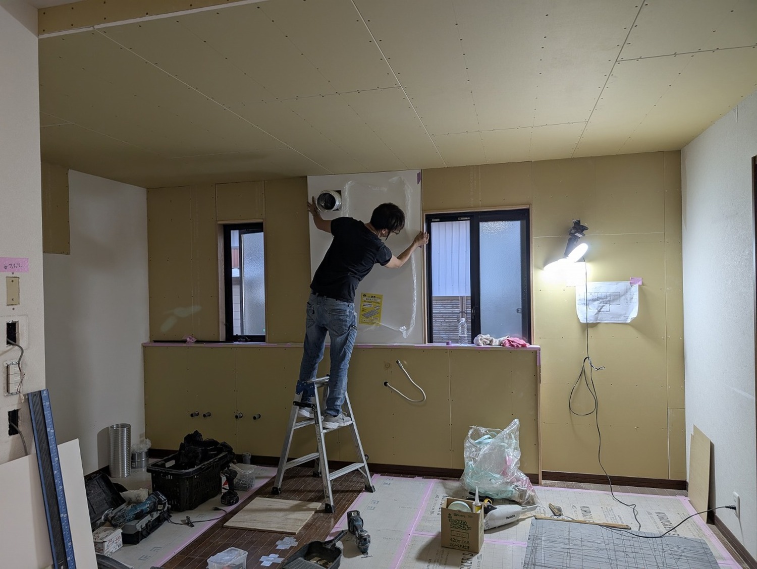 プラスターボードを張り終え、下地作りの工程が終了しました。