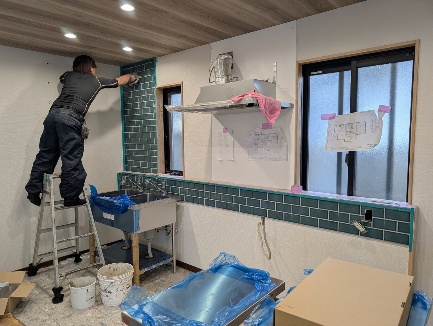 戸棚なども設置して、キッチン部分の工事がこれで完了になります。