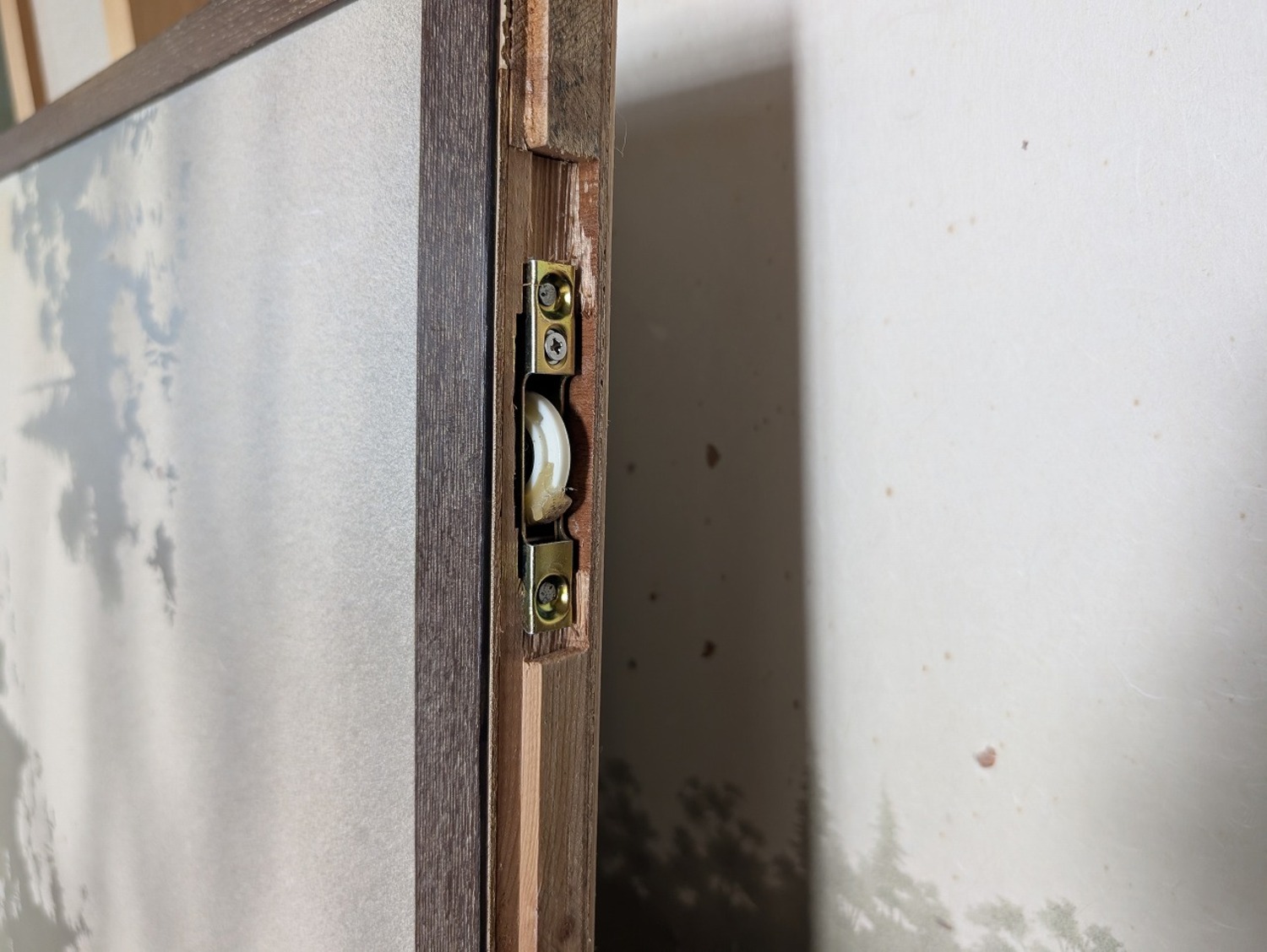 襖の戸車が割れて動きが悪くなっていたので、建具屋さんにお願いして戸車を変えて頂きました。スムーズに動くようになりました。