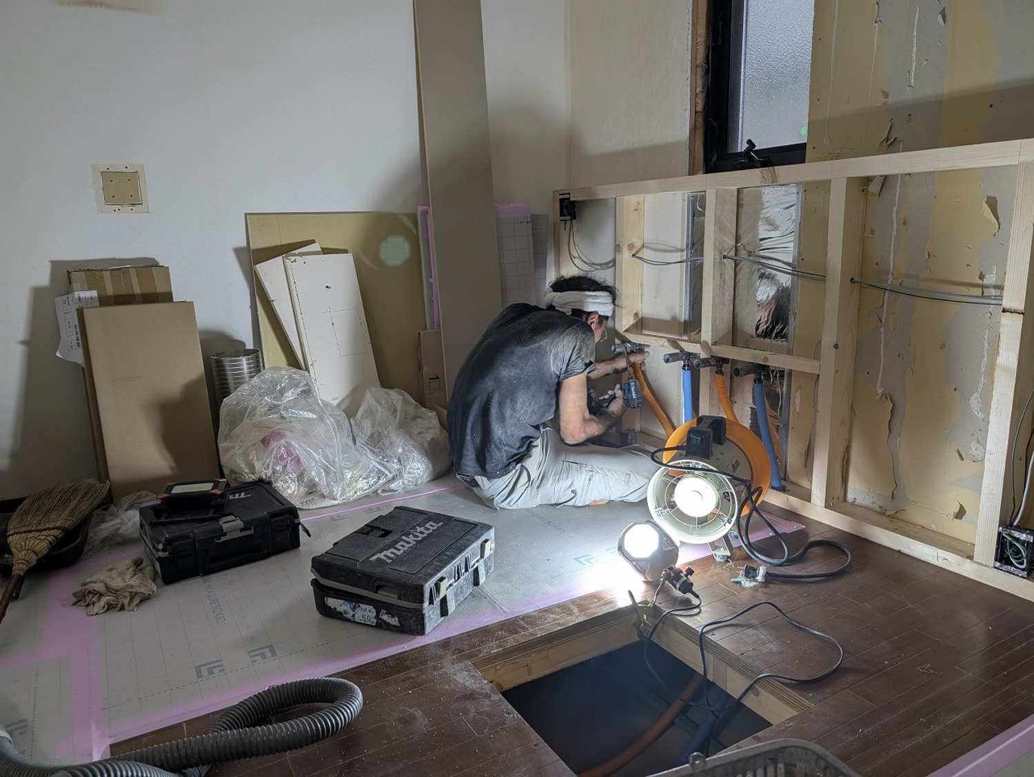 床下点検口が和室にしかなかったので、キッチン部分に新しく作りました。