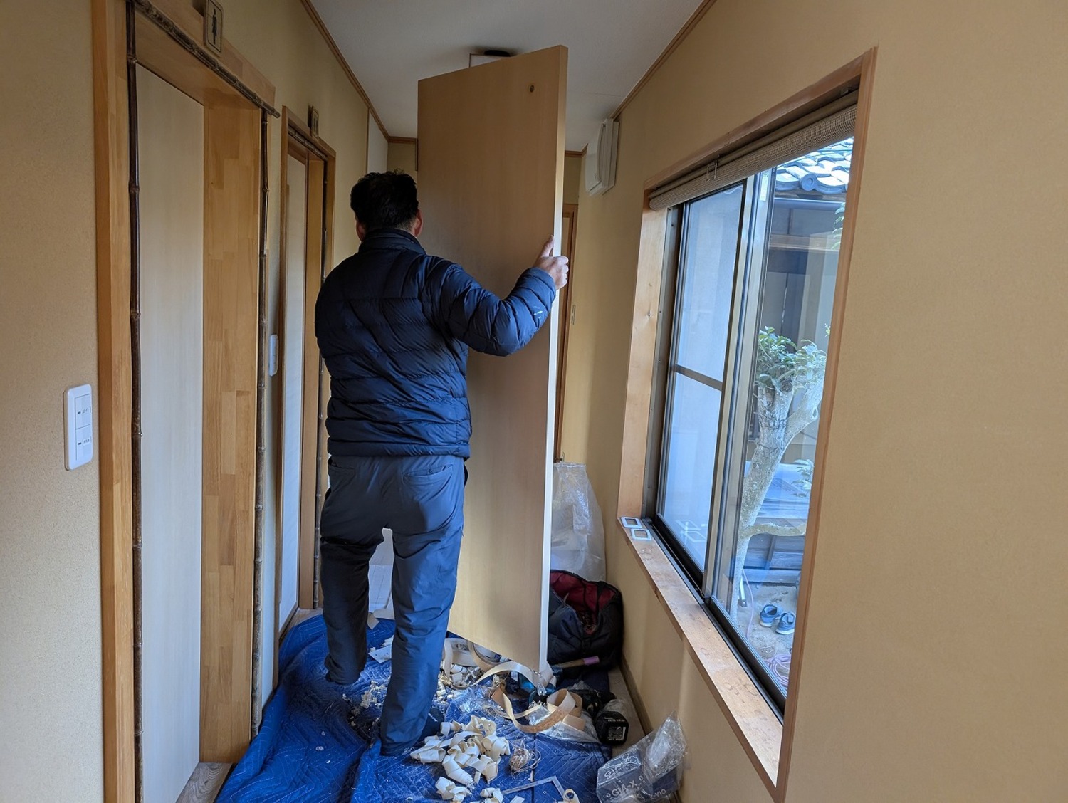 元々の出入口は壁になったので、左官屋さんに既設の壁と似たような雰囲気になるように塗ってもらいました。