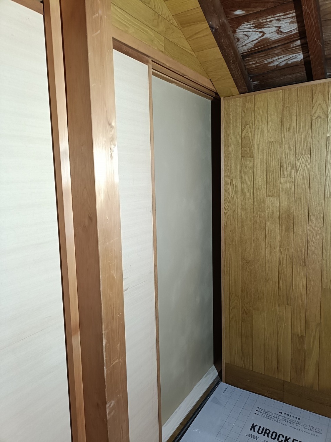扉は、開き戸を付ける予定なので、枠を取り付けました。