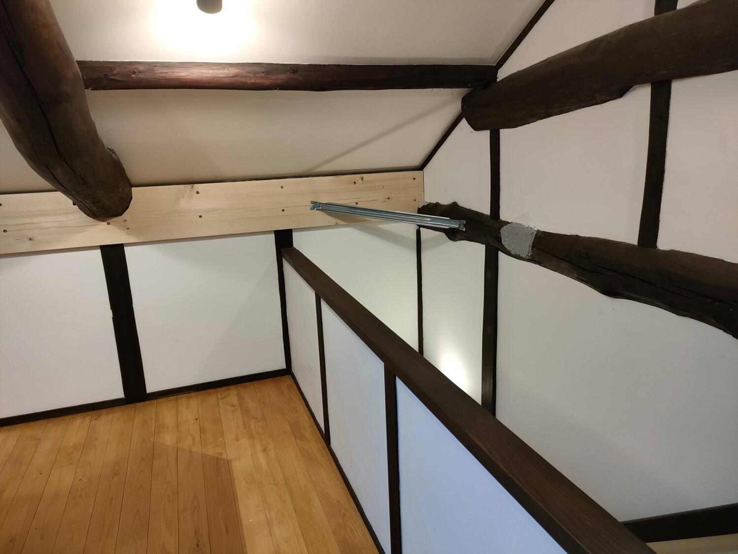 - 見た目の問題と更なる補強を兼ねて、ツーバイフォー材を加工しています。