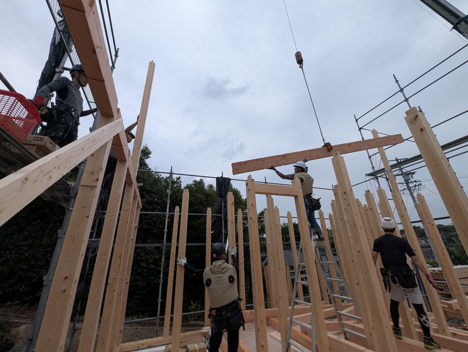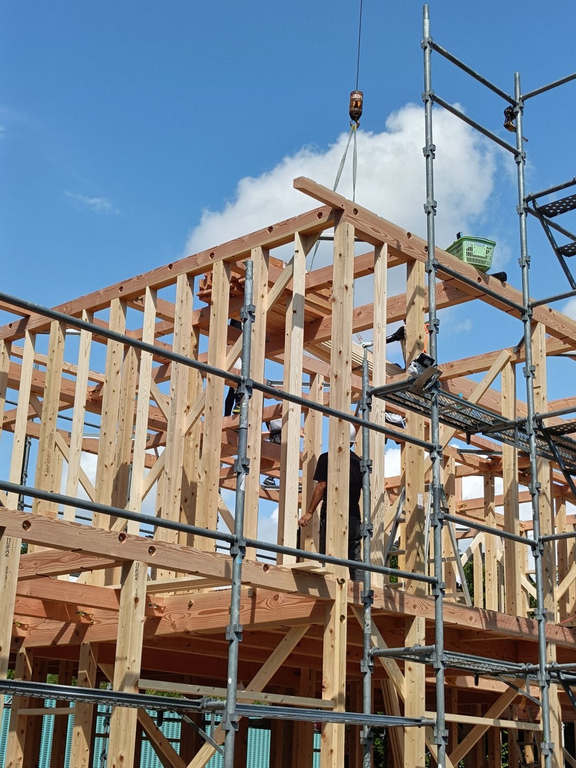 お昼前には2階梁の突入!!順調にお家の骨格が仕上がっていきます。