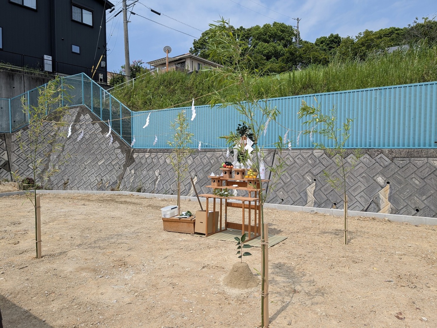 土地の神様に無事に工事が進むよう、建物が完成するよう、またその後末永く栄える事ことを祈願しました。