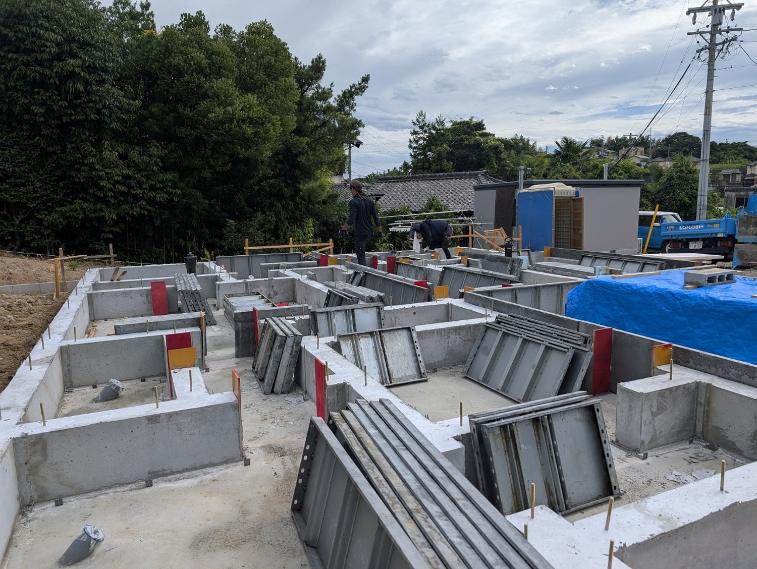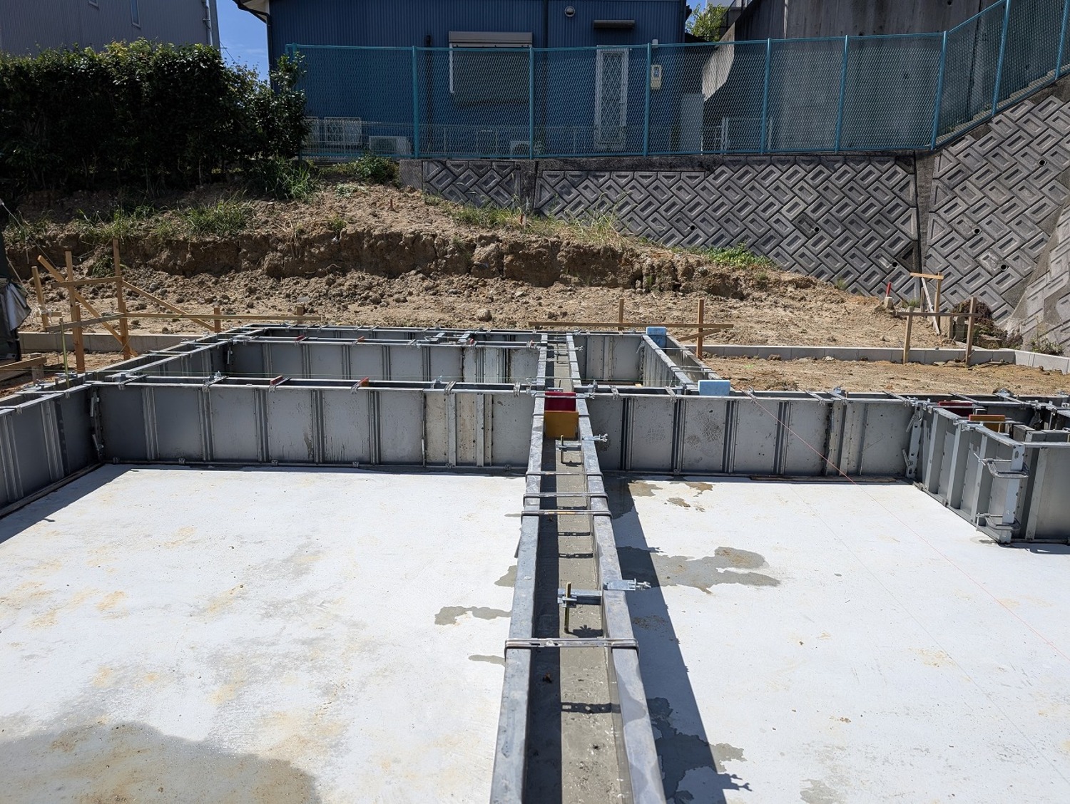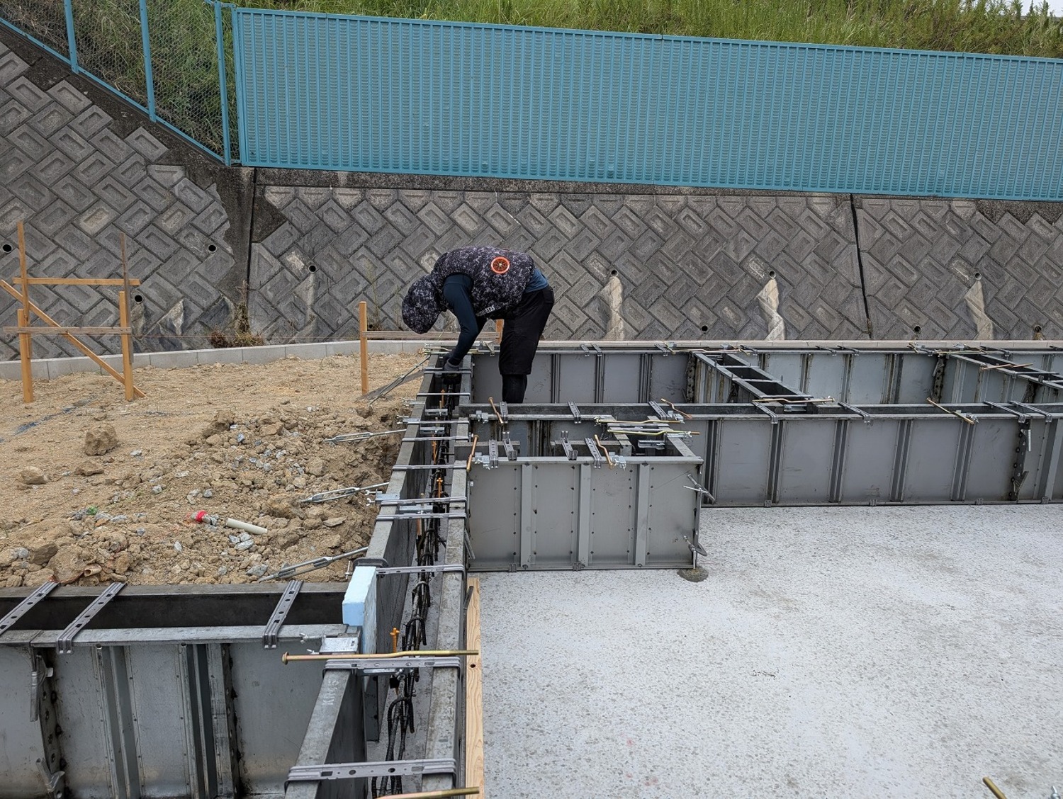 スラブコンクリートが固まれば、立ち上がり部分を造っていきます。
