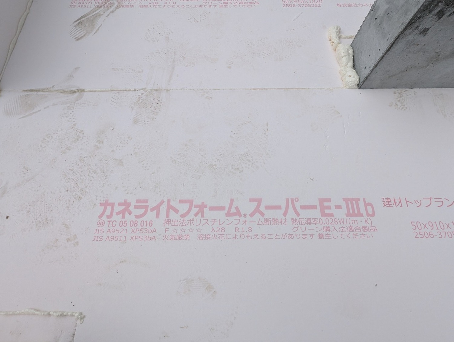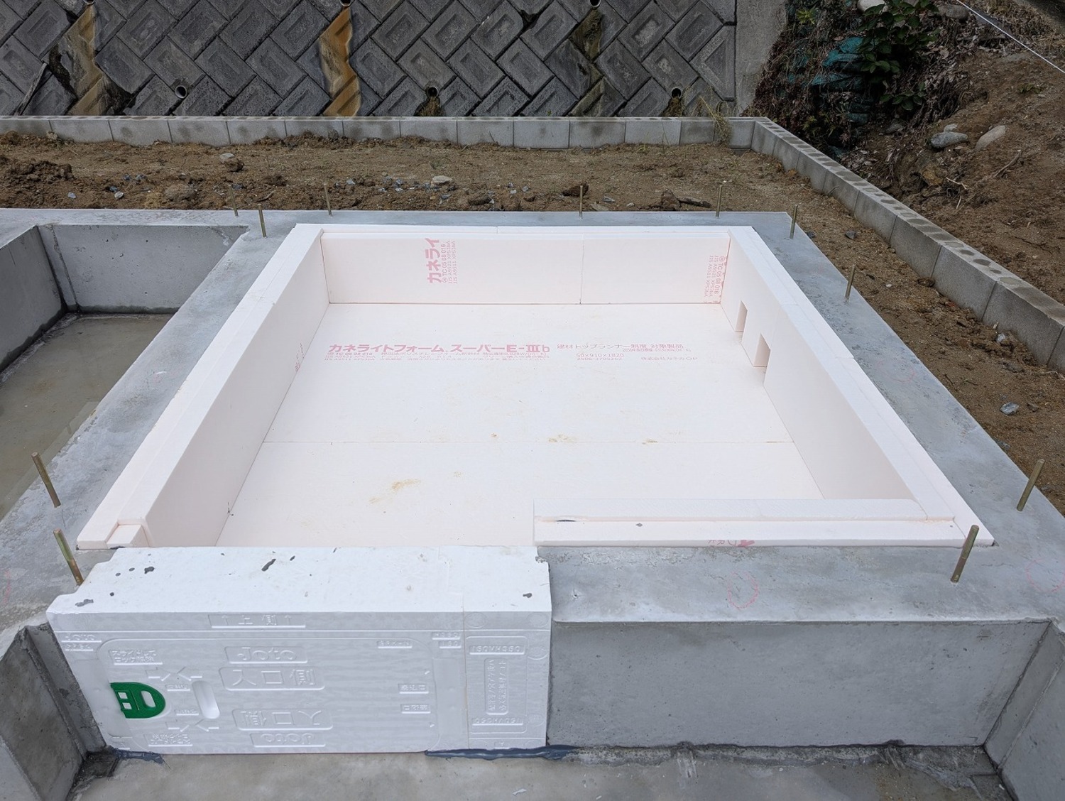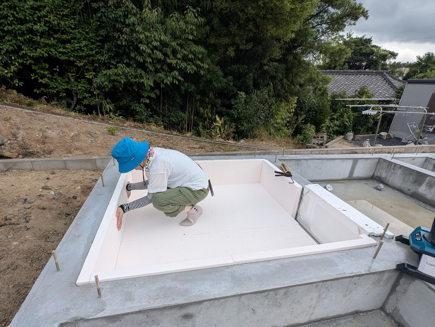 基礎が完成したので、風呂場部分に断熱材を貼っていきます。