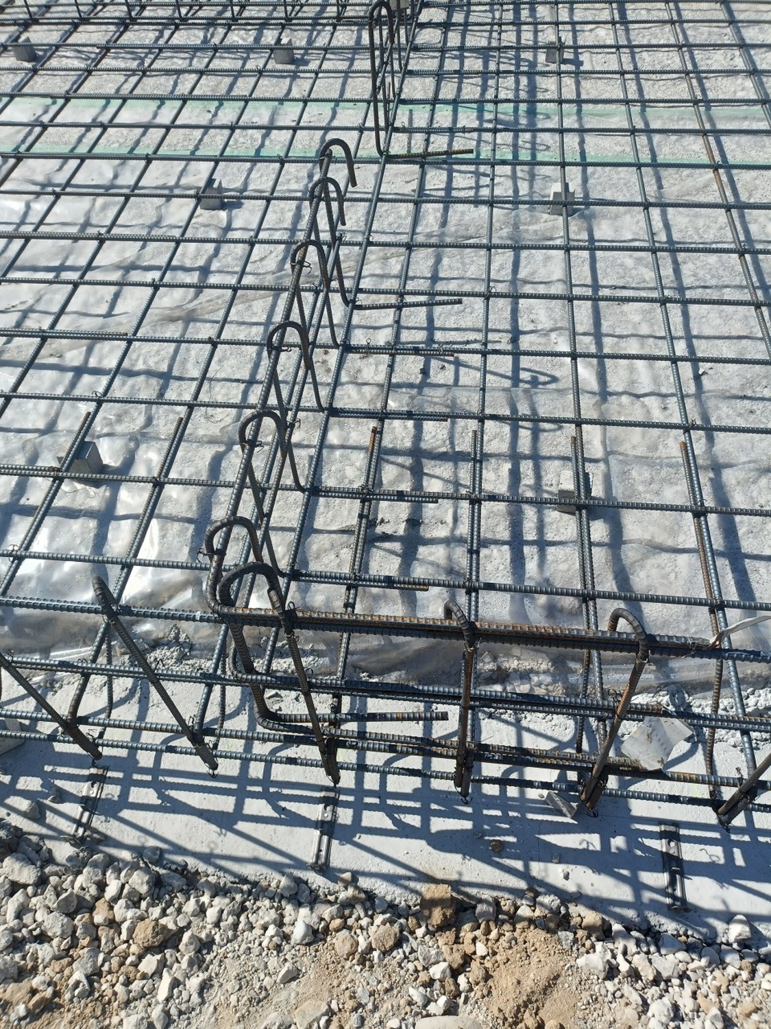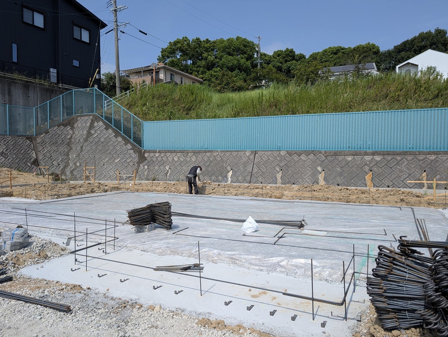 防湿シートをひいた後、鉄筋を組んでいきます。