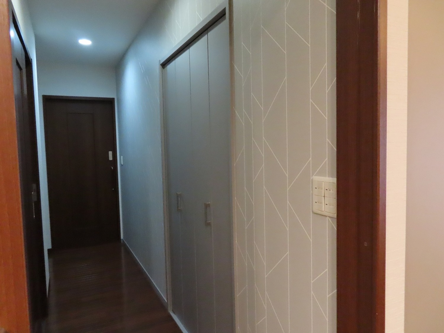 完成写真廊下部分にも、収納を新設しました。掃除用具などの収納やストック置き場に便利です。