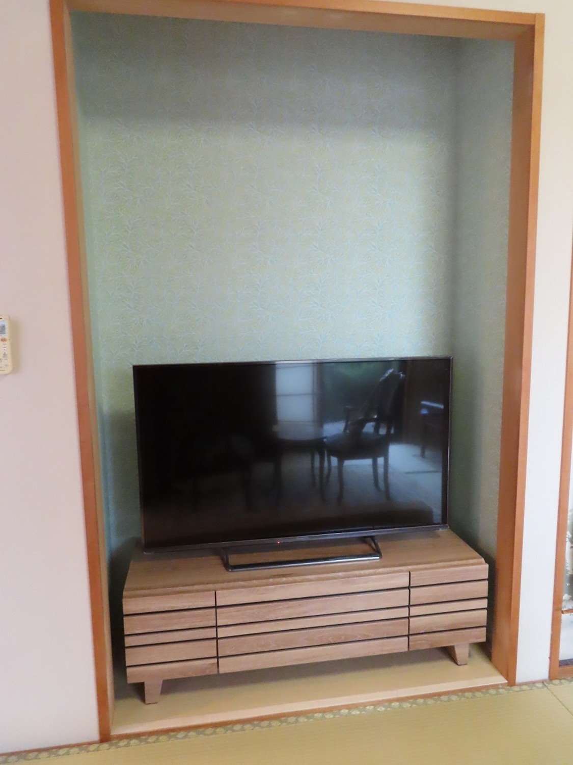 完成写真廊下収納の反対側には、テレビコーナーを改めて作りました。